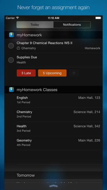 Het plannen van je schoolrooster kan moeilijk zijn. Met verspreide lesuren, opdracht deadlines en examens worden universiteitsstudenten geconfronteerd met een uitdaging wanneer ze proberen alles in hun dagen te passen. Dankzij myHomework Student Planner is het een veel eenvoudigere taak en kan deze gemakkelijk worden gedaan via je smartphone of mobiele apparaat. Stel herinneringen en meldingen in om te worden gewaarschuwd wanneer projecten moeten worden ingeleverd en wanneer de les- of college-uren beginnen. Je zult nooit meer gestrand in bed liggen of te laat zijn voor een les!